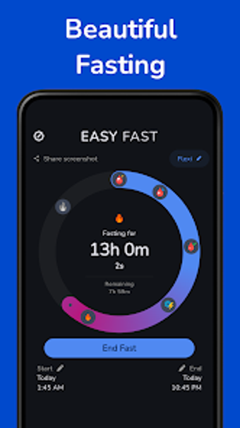 Aplikasi ini memberikan pengalaman pengguna yang sederhana dengan kemampuan untuk menyesuaikan tema dan pengaturan. Cocok untuk pemula maupun mereka yang berpengalaman dalam puasa intermiten, Easy Fast menawarkan cara yang efisien untuk tetap fokus dan teratur. Dengan mode gelap yang hemat baterai dan widget yang menarik, aplikasi ini menjadi alat yang berguna bagi siapa saja yang ingin mengelola pola makan mereka dengan lebih baik.